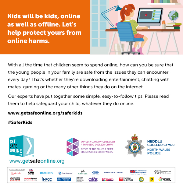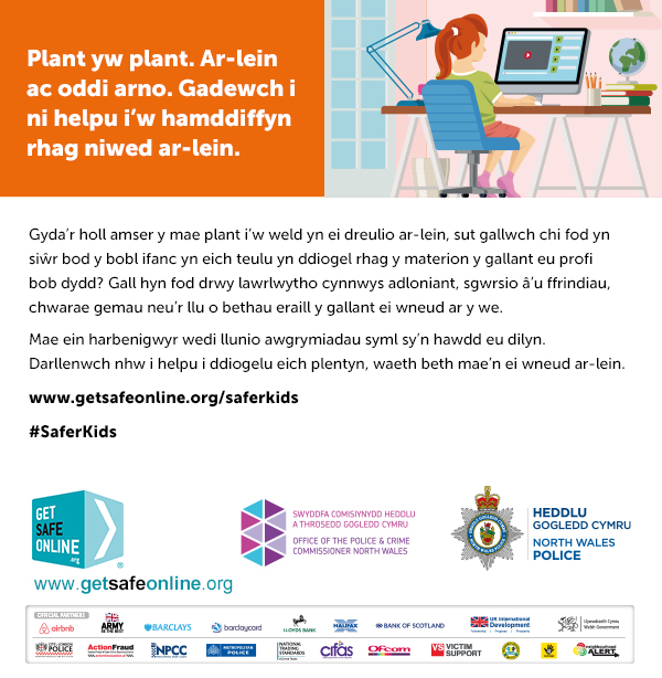 #PlantMwyDiogel / #SaferKids 23.10.2024Taflen Heddlu Gogledd Cymru – Cadw’n ddiogel arleinNorth Wales Police Leaflet – Keeping safe online
